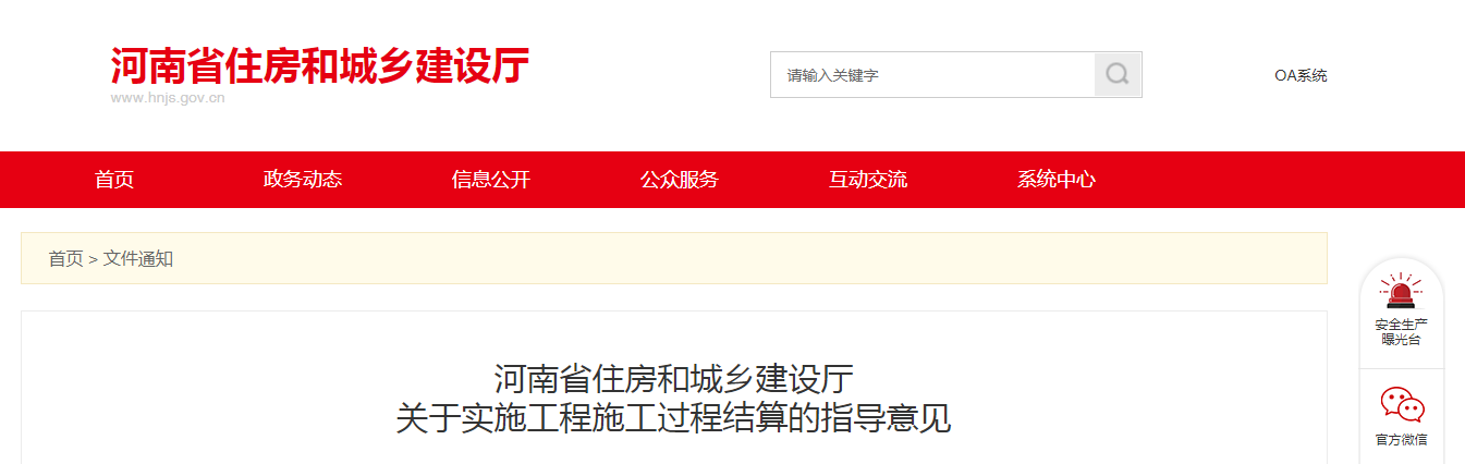 2020年7月23日,河南省住建廳下發(fā)《關(guān)于實施工程施工過程結(jié)算的指導(dǎo)意見》。