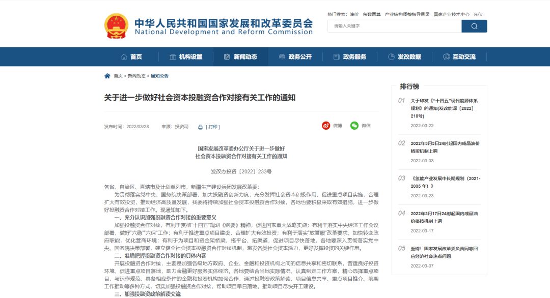 3月28日,國家發(fā)展改革委辦公廳印發(fā)《關(guān)于進一步做好社會資本投融資合作對接有關(guān)工作的通知》(以下簡稱《通知》),部署各地積極采取有效措施,進一步做好投融資合作對接工作。