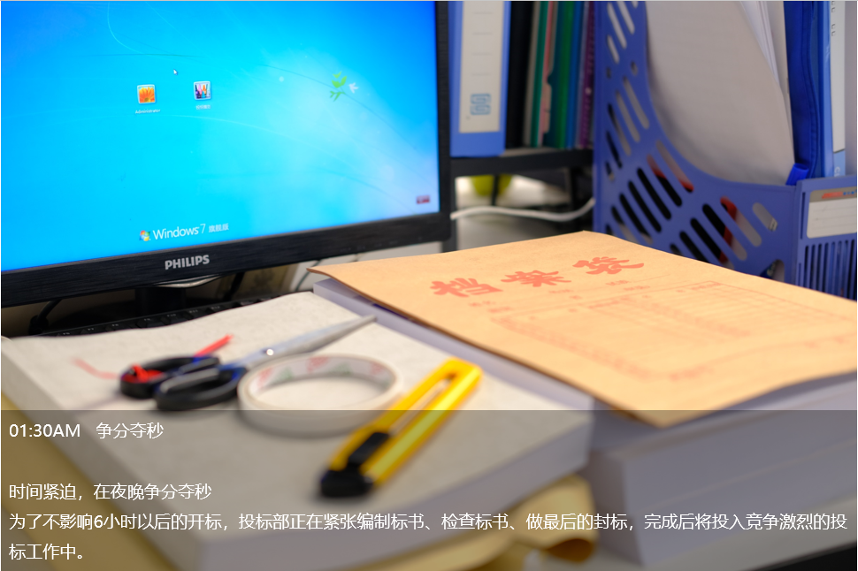 凌晨1點,投標(biāo)部毓兒還在趕標(biāo)書,這是她這個月第五份標(biāo)書,已經(jīng)連續(xù)熬了四個晚上。她說:“對于投標(biāo)人說,有一大半的標(biāo)書,都是在半夜里完成的。尤其是臨近開標(biāo)的前兩天,基本都會加班到很晚。”