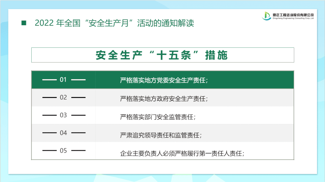 今年6月是第21個全國“安全生產月”,主題是“遵守安全生產法,當好第一責任人”,6月16日為全國安全宣傳咨詢日。鼎正咨詢積極響應國家號召,全面啟動安全生產月活動,凝聚安全共識,進一步強化底線思維,將安全意識植根于每個人心間。