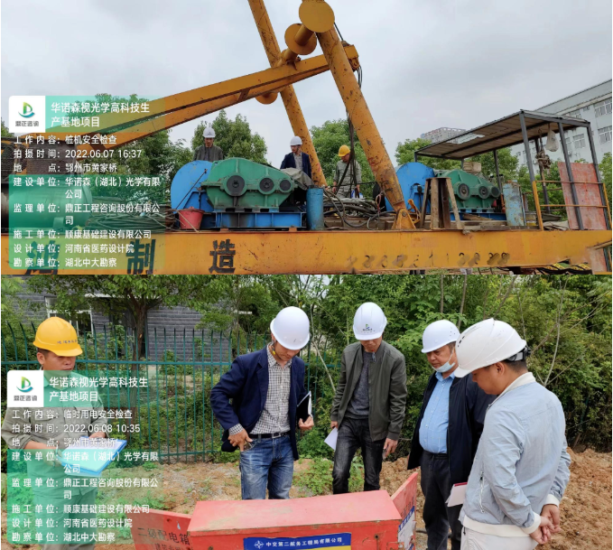 6月8日,華諾森視光學高科技生產基地項目總監(jiān)理工程師杜勝與施工單位項目經理對施工現場、辦公區(qū)和生活區(qū)在內的臨時用電逐一檢查。針對檢查中發(fā)現的施工現場臨時用電技術安全資料的完整性,電源線路中接地線設置的規(guī)范性以及生活區(qū)電源線接口安全等問題,采取面對面交流的形式,現場指出問題所在,并講解安全用電規(guī)范,提高作業(yè)人員的安全意識。