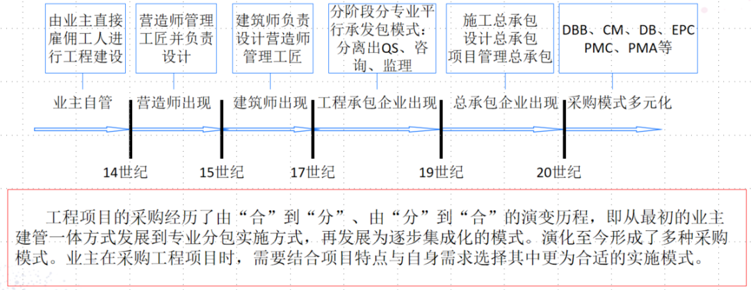 在這一演變過程中,業(yè)主的決策權不斷被削弱,外部機構由工作責任不獨立(為業(yè)主提供服務與支持,但不需要承擔決策責任)發(fā)展為不完全獨立(業(yè)主管理的必要補充),進而發(fā)展為責任基本獨立(代表業(yè)主實施管理)。對工程項目的管理由“建管合一”逐步發(fā)展為“建管分離”。