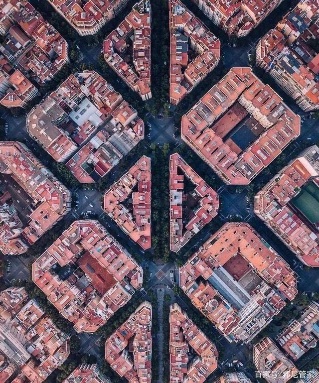 他甚至還規(guī)劃幾個(gè)街區(qū)構(gòu)成一個(gè)單元,來共享一所學(xué)校、醫(yī)院、市場(chǎng)等公共設(shè)施,塞爾達(dá)近200年前的超前設(shè)計(jì),為這座城市賦予了血肉,也奠定了巴塞羅那城建的基礎(chǔ)。城市的樓房排列整齊,高度一致。道路像棋盤一樣,宅樓高不超過六層樓。