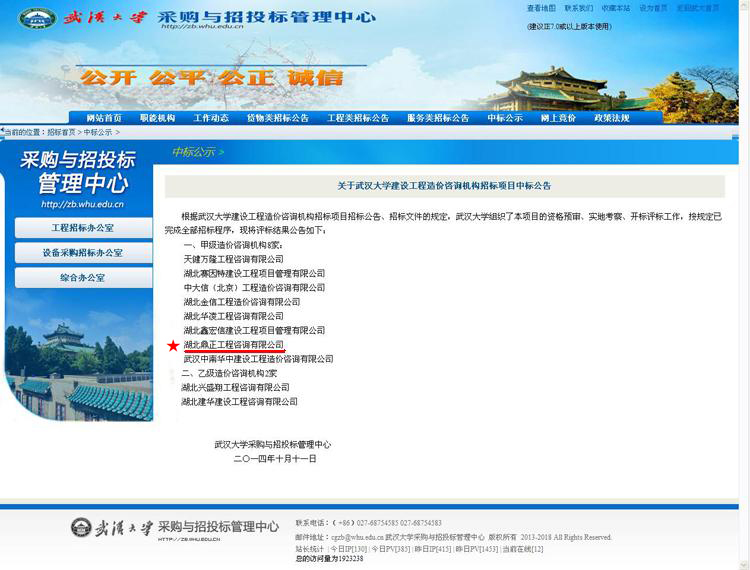 我公司入圍武漢大學(xué)建設(shè)工程造價(jià)咨詢機(jī)構(gòu)信息庫(kù),此次遴選面向全國(guó)工程造價(jià)咨詢企業(yè)進(jìn)行招標(biāo),共入圍10家企業(yè),主要為武漢大學(xué)提供建設(shè)工程項(xiàng)目工程量清單與招標(biāo)控制價(jià)編制與審核、全過(guò)程造價(jià)控制、竣工結(jié)算審核等相關(guān)服務(wù)。