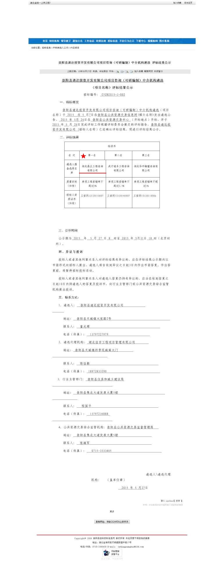 【經(jīng)營成果】我司入圍崇陽縣通達投資開發(fā)有限公司項目咨詢(可研編制)中介機構庫