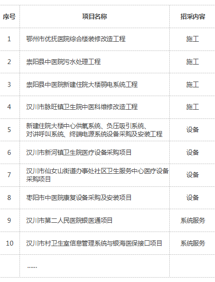 截止目前我司已為鄂州、咸寧、漢川、襄陽等地區(qū)的公立民營醫(yī)院及基層醫(yī)療衛(wèi)生機(jī)構(gòu)提供了30多個項目的招采服務(wù)。