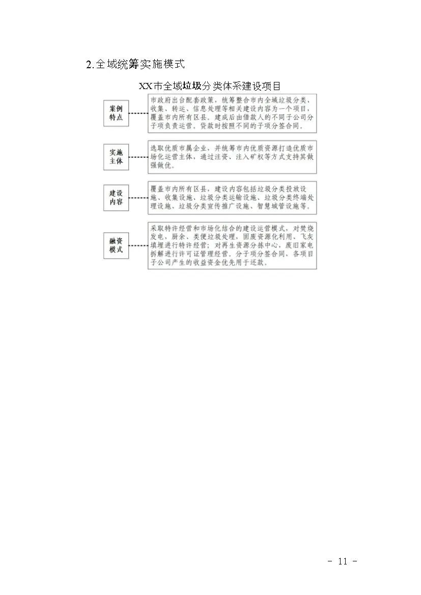 (四)完善機制,全面管理??h域垃圾污水處理設施建設項目的融資主體應為已建立現(xiàn)代企業(yè)制度、經(jīng)營狀況和信用狀況良好,且愿意履行社會責任的企業(yè)。鼓勵以縣(市、區(qū))為單位,指定或組建專業(yè)公司統(tǒng)一負責項目“投、融、建、管、運”,縣級及以上人民政府按規(guī)定授予長期特許經(jīng)營權(quán)。制定項目實施方案時,各地可梳理存量經(jīng)營性資產(chǎn),統(tǒng)籌各方面資源,助力項目實施主體提升融資綜合能力。