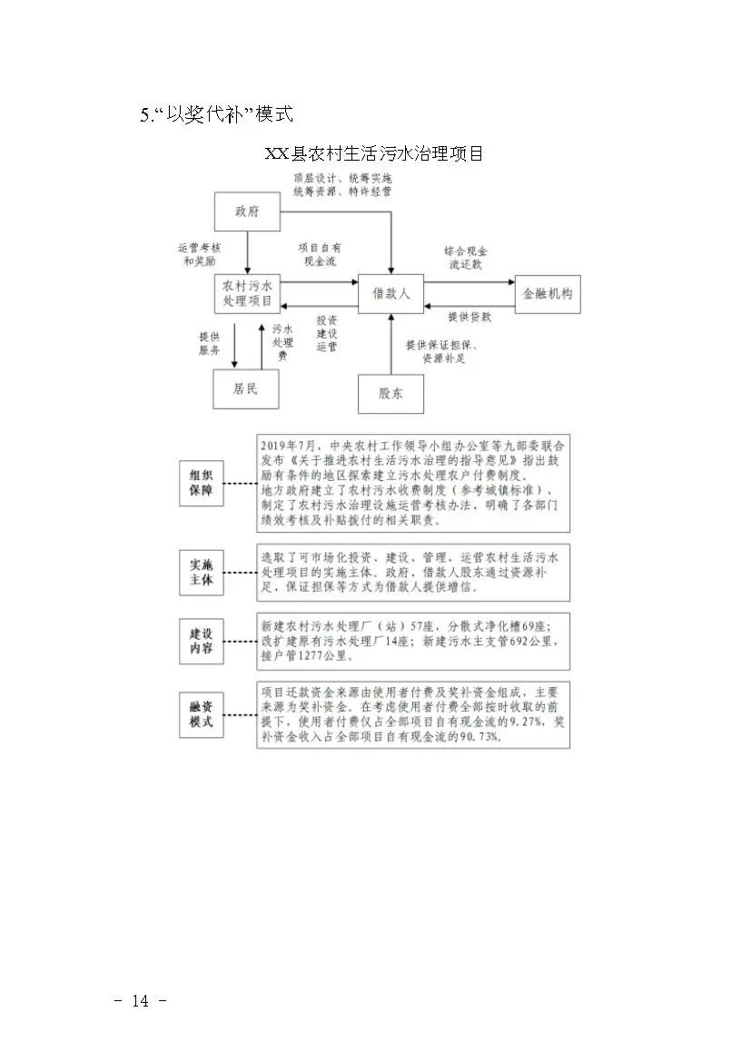 該類建設內(nèi)容一般無自身收益,建議結(jié)合地方實際,統(tǒng)籌做好項目策劃,將公益性建設內(nèi)容與可產(chǎn)生收益的經(jīng)營性建設內(nèi)容結(jié)合起來,或利用當?shù)厣笆_采收益、礦山開發(fā)收益等項目外收入作補充,實現(xiàn)項目現(xiàn)金流和信用結(jié)構(gòu)總體平衡。對于資源稟賦較差的村鎮(zhèn),地方政府可探索“以獎代補”模式。