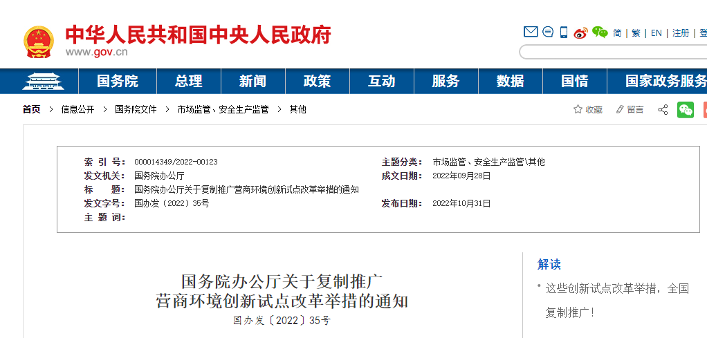 近日,國務院辦公廳發(fā)布關于復制推廣營商環(huán)境創(chuàng)新試點改革舉措的通知。一是進一步破除區(qū)域分割和地方保護等不合理限制,“清除招投標和政府采購領域對外地企業(yè)設置的隱性門檻和壁壘”,二是健全更加開放透明、規(guī)范高效的市場主體準入和退出機制,三是持續(xù)提升投資和建設便利度,“推進社會投資項目‘用地清單制’改革”、“分階段整合相關測繪測量事項”、“推行水電氣暖等市政接入工程涉及的行政審批在線并聯(lián)辦理”、“開展聯(lián)合驗收‘一口受理’”、“進一步優(yōu)化工程建設項目聯(lián)合驗收方式”、“簡化實行聯(lián)合驗收的工程建設項目竣工驗收備案手續(xù)”、“對已滿足使用功能的單位工程開展單獨竣工驗收”等。四是更好支持市場主體創(chuàng)新發(fā)展,五是持續(xù)提升跨境貿易便利化水平,六是維護公平競爭秩序,七是進一步加強和創(chuàng)新監(jiān)管,八是依法保護各類市場主體產權和合法權益,九是優(yōu)化經常性涉企服務。