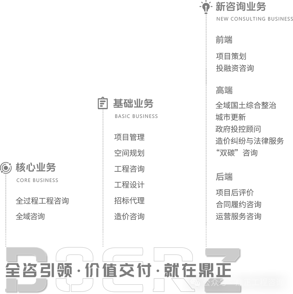 鼎正工程咨詢股份有限公司,是一家全牌照·高資信·全產(chǎn)業(yè)鏈的工程咨詢及設(shè)計(jì)一體化的綜合性咨詢企業(yè)。