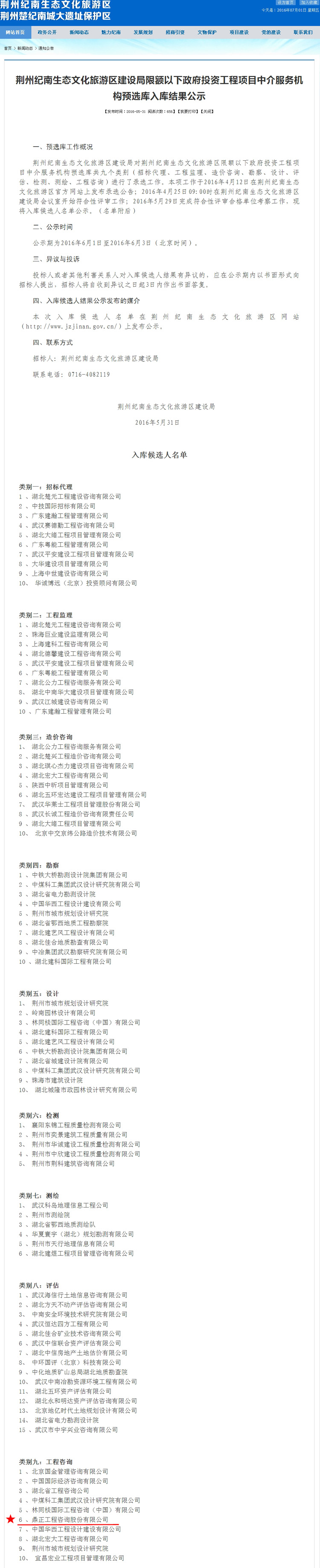 【經(jīng)營(yíng)成果】我司入圍荊州紀(jì)南生態(tài)文化旅游區(qū)建設(shè)局限額以下政府投資工程項(xiàng)目中介服務(wù)機(jī)構(gòu)預(yù)選庫(kù)